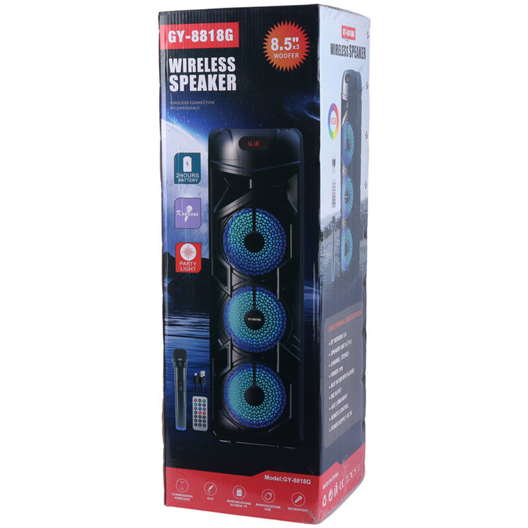 اسپیکر چمدانی بی سیم قابل حمل GY-8818G همراه با میکروفون و ریموت کنترل
