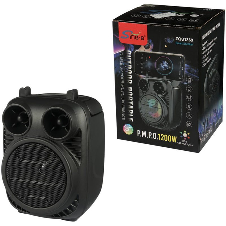اتصال به صورت بی سیم توسط بلوتوث، دارای یک عدد درایو 3 اینچی با توان خروجی 8 وات و توان اسمی 1200 وات